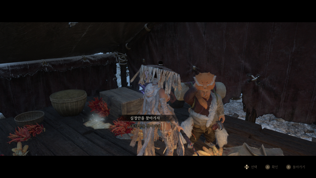 5. 북인무당 보스전 후 난민 거주지 신단 근처 텐트에서 부두 이야기 듣기