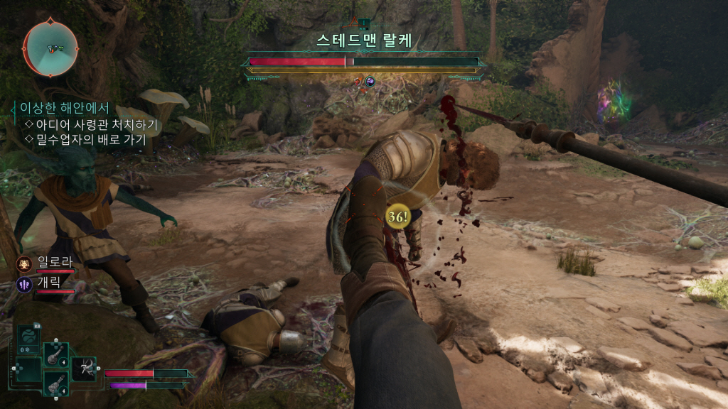 게임진행은 혼자가 아닌 동료 2명과 파티를 해서 진행되며 1인칭과 3인칭 2가지 시점을 제공하고 있다. 개인적으로 3인칭을 선호하는데 문제는 3인칭의 모션이 상당히 어색하다. 개인적으로 게임을 재미있게 즐기고 있기에 어색한 모션이 큰 아쉬움으로 다가온다.