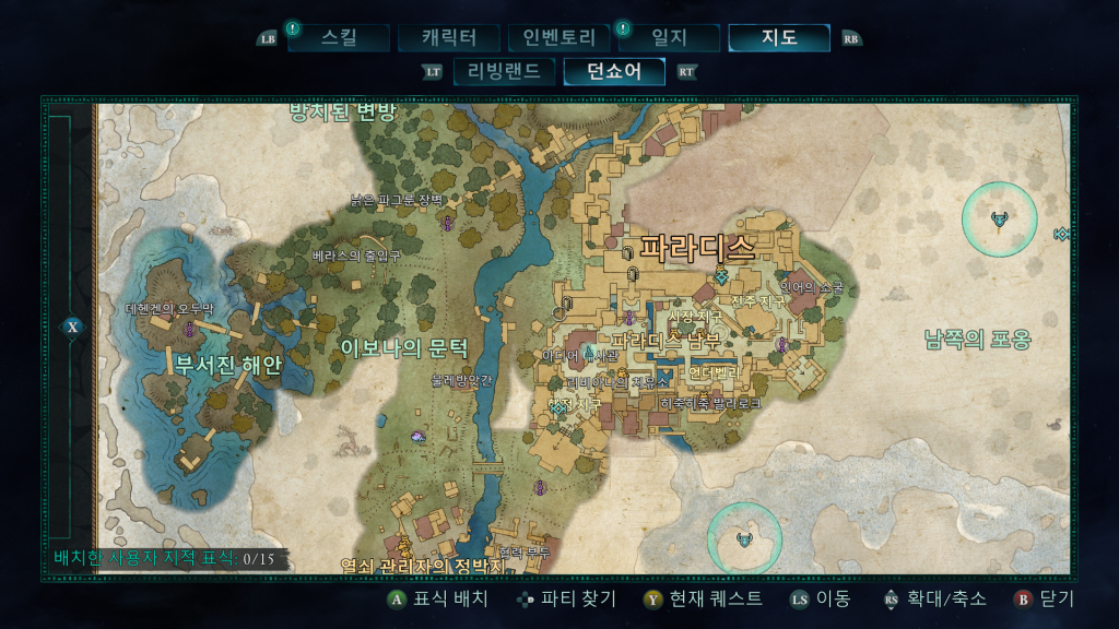 전투 시 아쉬운 부분은 패드기준 단축키가 상, 하, 좌, 우 4개로 너무 부족하다. 그중 2가지는 생명력, 정수(마나) 물약을 등록하면 스킬 2가지로 단축키에 등록하고 전투를 하게 된다. 단축키 없이 스킬을 선택사용이 가능하나 단축키가 아닌 스킬사용 시 게임이 멈춘 뒤 선택이 가능해 실시간 전투에 흐름이 끊어지기에 뭔가 아쉽다. 반대로 스킬 4가지를 등록 후 물약을 쓸 때 멈추게도 할 수 있지만 역시나 끊기는 건 마찬가지기에 아쉬운 부분이다.