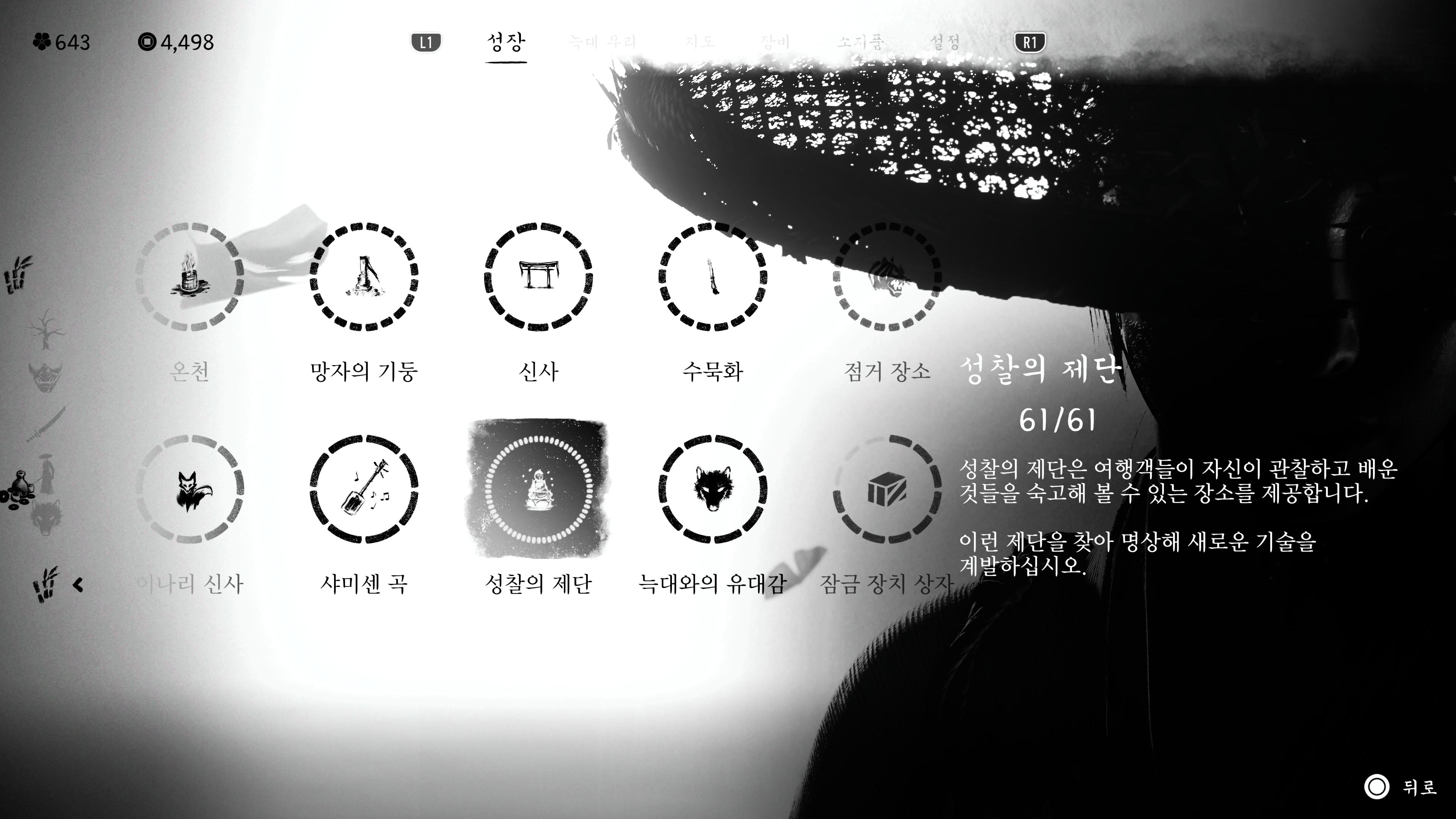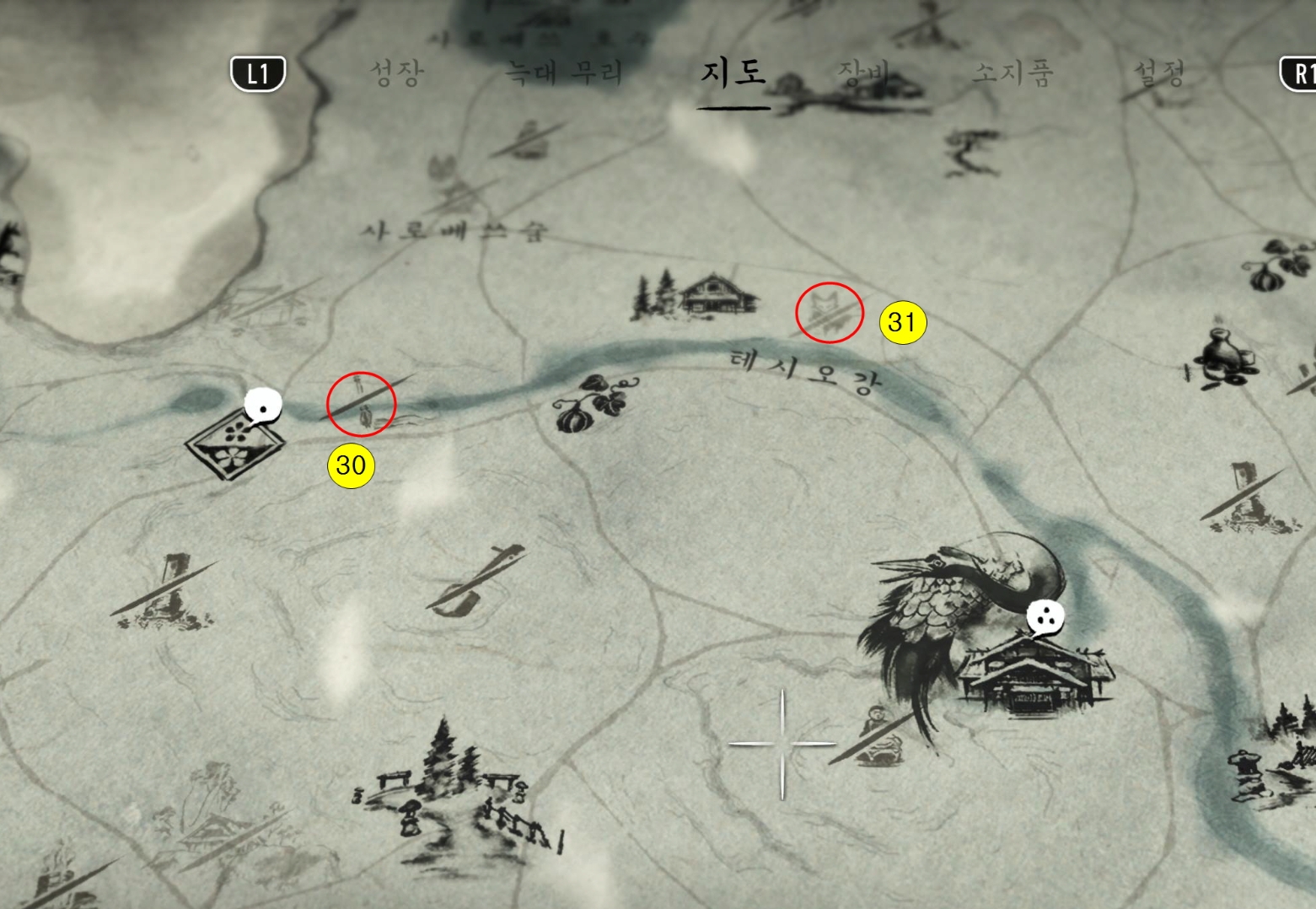 고스트 오브 요테이의 수집요소 중 신사, 수묵화, 여우굴(이나리 신사) 위치에 대해 작성한다. 수집요소들은 샤미센 노래, 지도상인등을 활용 찾으면 된다. 수묵화는 근처에 특이한 돌 옆에 있으니 게임 진행 시 발견하게 되면 찾아가면 된다.