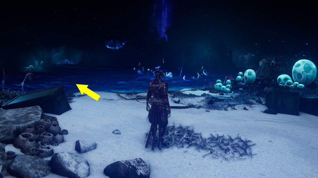 - 4번 위치에서 날도래로 건너간 후 왼쪽으로 진행. 아래로 내려가서 소금쟁이 타고 가기.