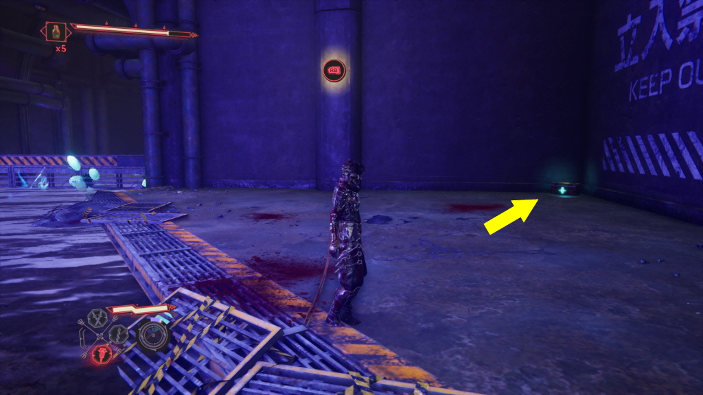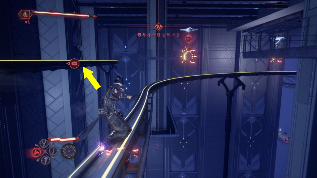 - 4번 위치에서 레일 타고 가서 적 만난 곳. 왼쪽으로 들어가 벽 타고 진행