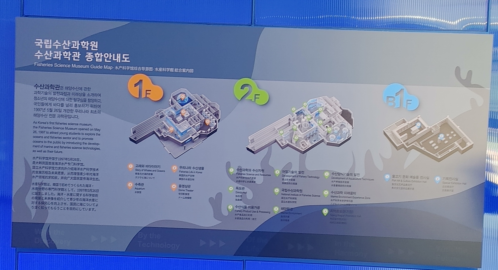 국립 수산과학관은 바다에 사는 다양한 생물, 과학기술과 수산업, 수산식량자원 등 바다에 관련된 다양한 내용들을 관람할 수 있다. 지상 2층, 지하 1층의 구조로 되어있고 지하 1층은 전시실로 메인 관람은 지상에 구성되어 있다. 실외도 시설이 있긴 한데 너무 무더운 날씨로 실내만 관람을 했다.