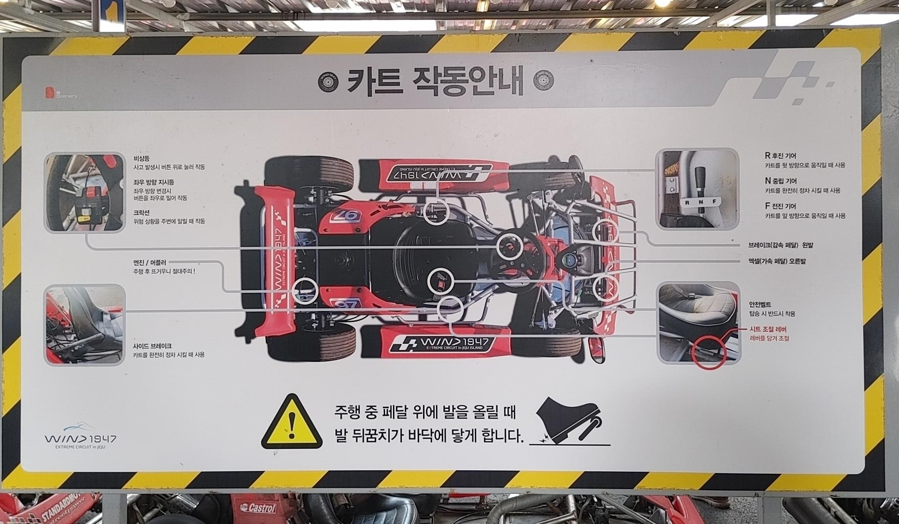 모든 체험시설이 그렇듯 안전이 제일중요하다. 카트도 운전이기에 급출발, 급정거, 충돌, 역주행, 운전 중 촬영 등 안전에 유의해서 카트를 즐기면 된다.