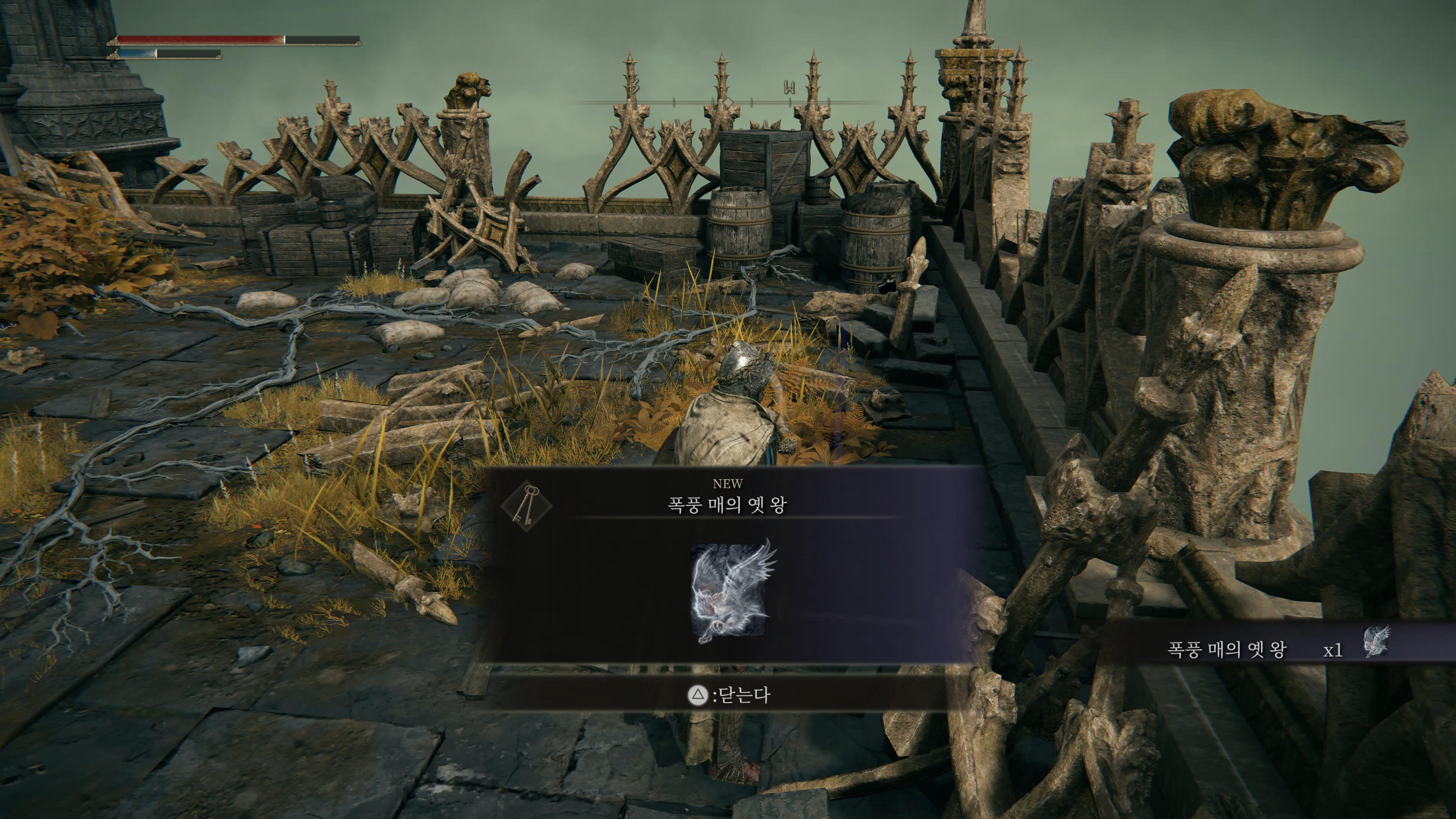 3. 획득 아이템 : 의장 직검, 짐승문양 황금방패, 폭풍 매 디네 뼛가루