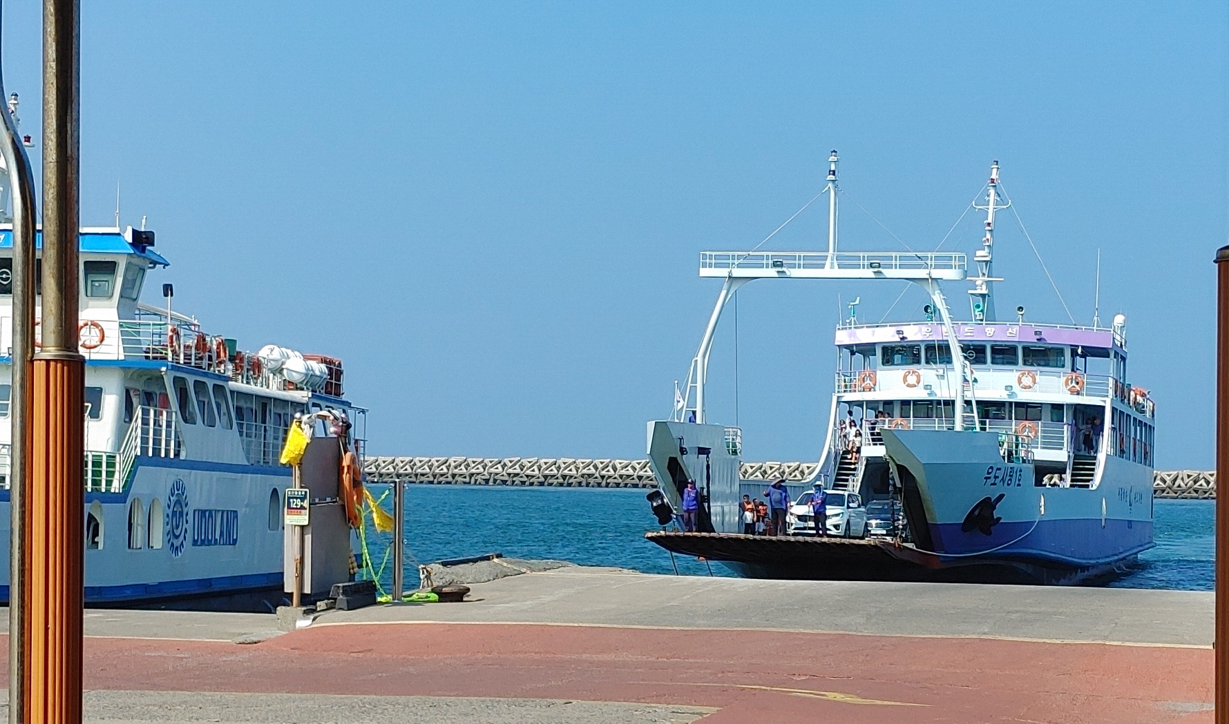 매표 후 승선시간에 맞춰 배를 탑승하면 된다. 우도의 항구는 천진항, 하우목동항 2군데가 있다. 배시간표를 확인 원하는 항구로 가는 배를 시간에 맞추어 탑승하면 된다. 대부분 우도 교통수단을 사전예약하고 방문하기에 렌트업체에서 목적지를 알려주면 맞추어 배를 타면 된다.