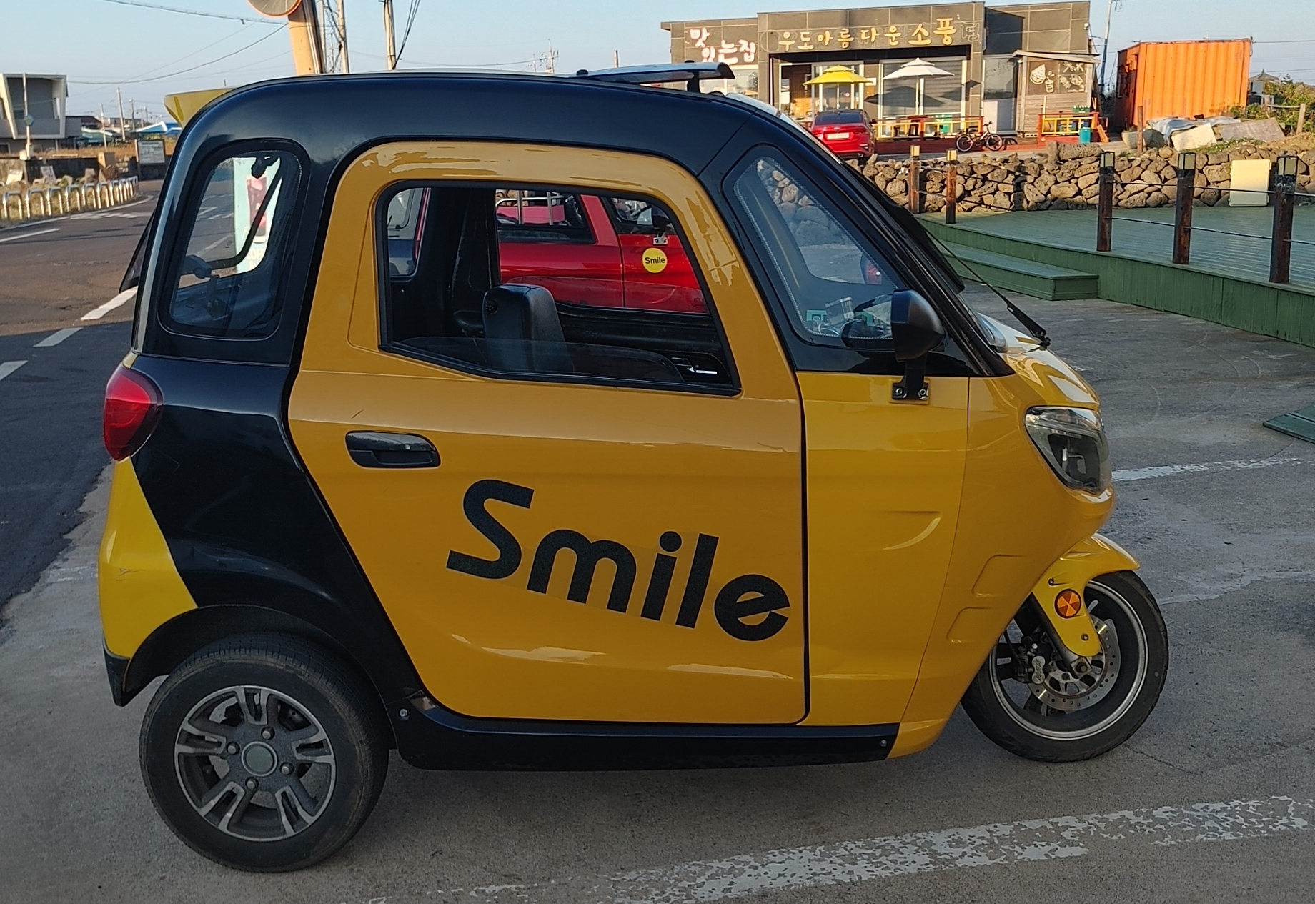 '마루와 달피' 전기차의 비용은 종일권 기준 30,000원으로 2인승이며, 만 21세 이상 면허가 있어야 운전이 가능하다. 간단한 작동방법교육 후 우도여행을 즐기면 된다.