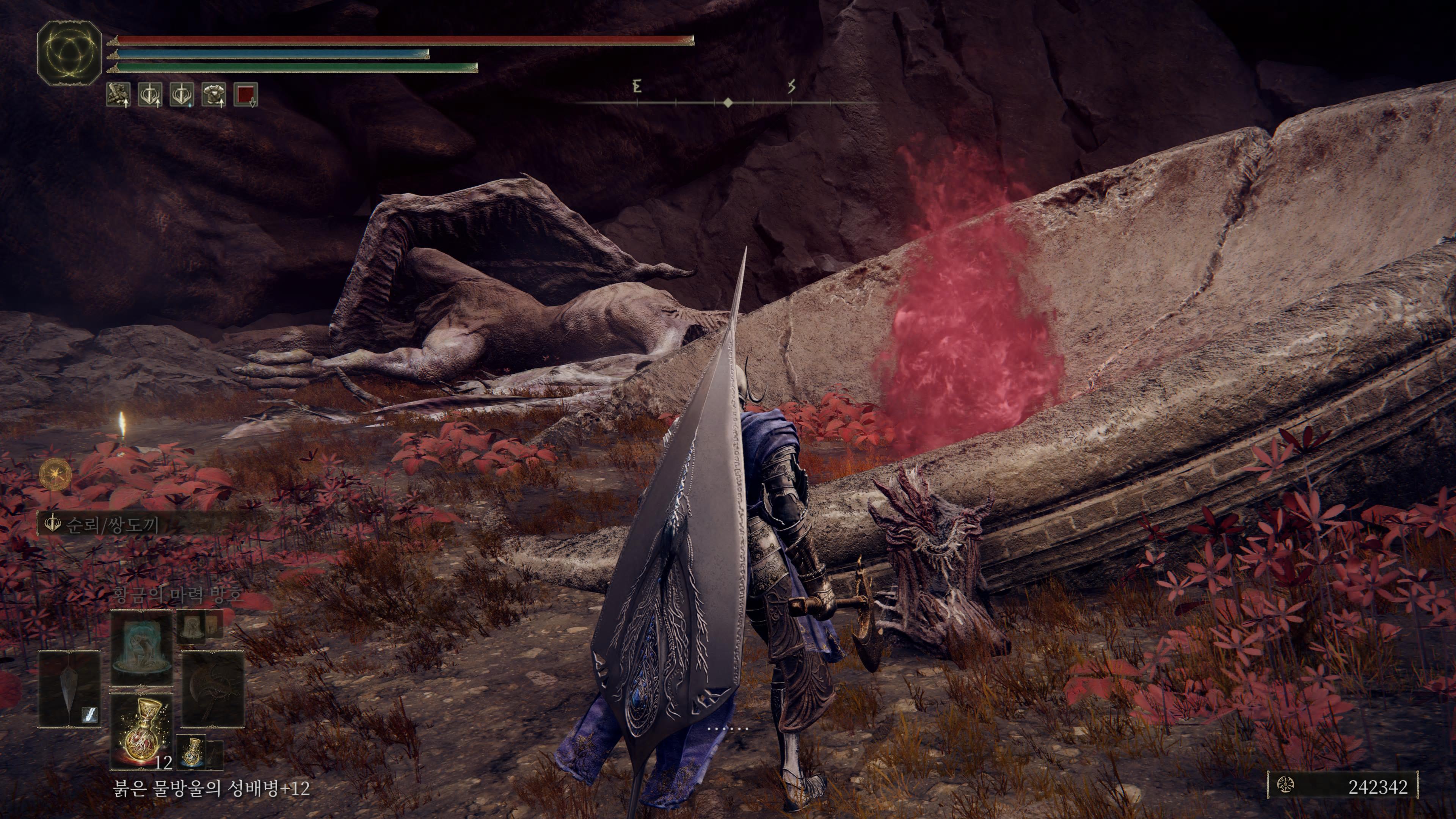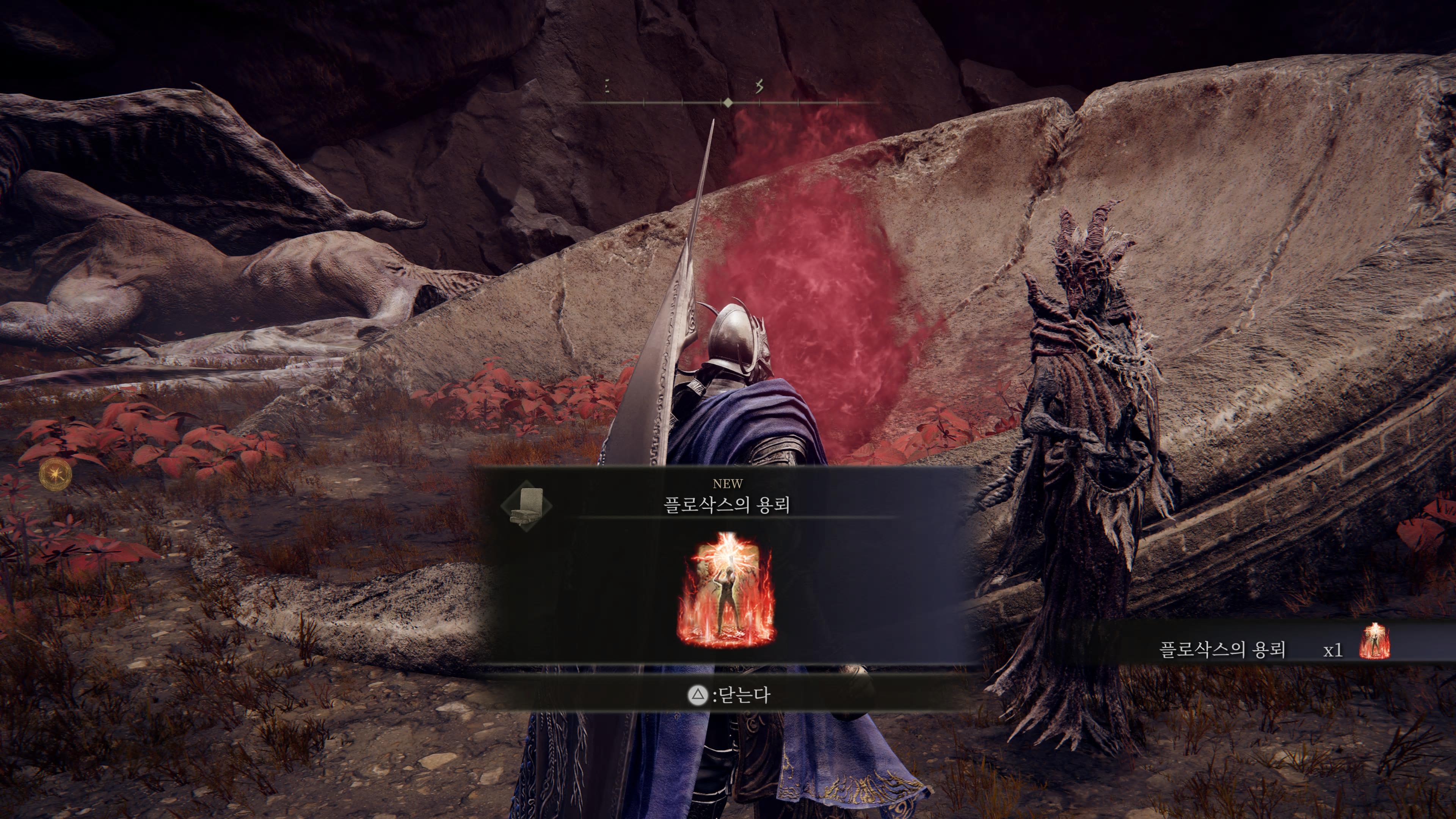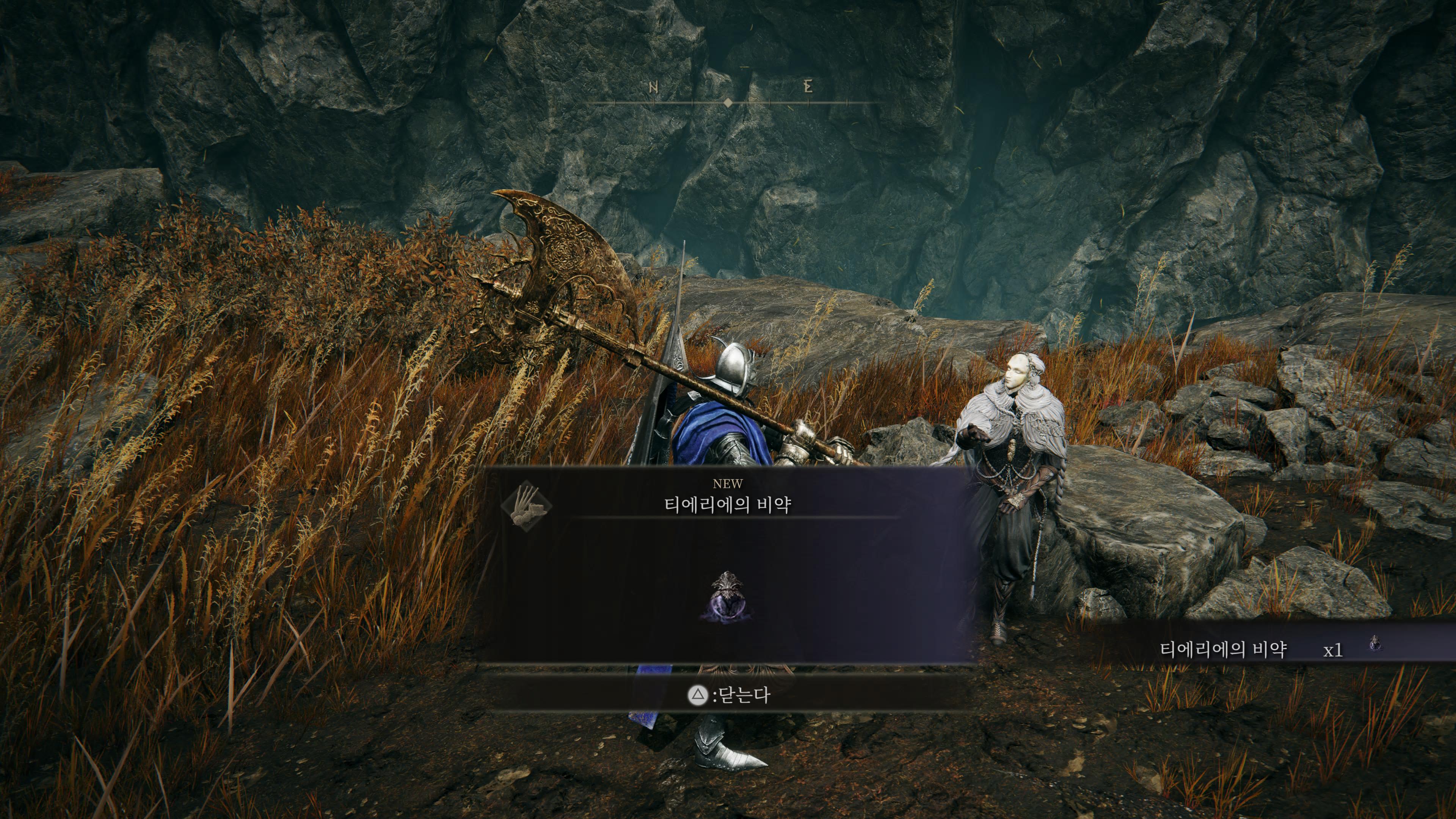 2. 진행 순서 : 폭룡 베일 전투 → 에이곤 아이템 먹기 → 용찬의 무녀 대화 (아이템 획득)