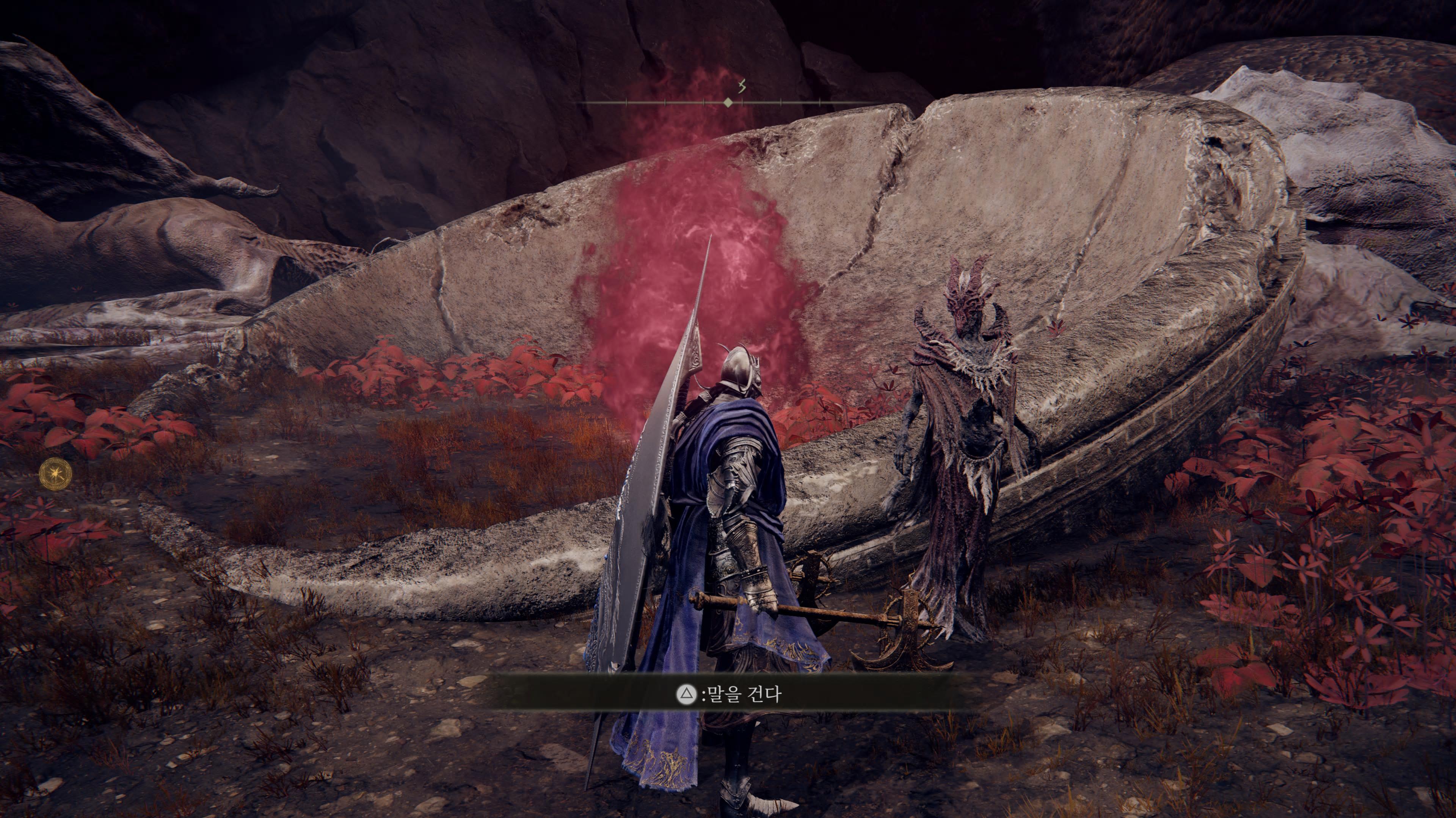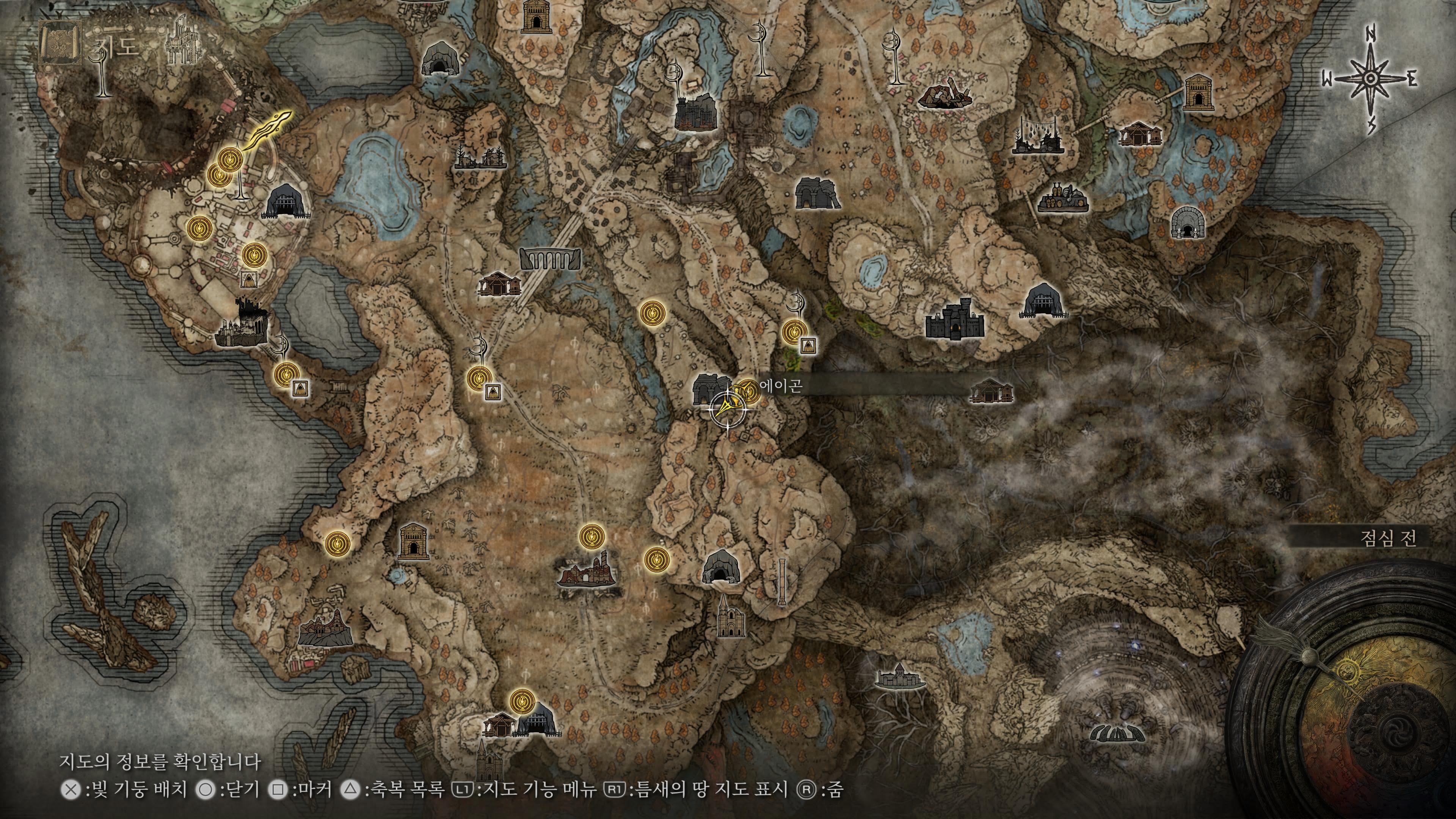 기둥 언덕 중턱 축복 근처에 가면 쓰러져 있는 에이곤을 만날 수 있다. 이후 남쪽 용굴을 지나 용찬의 무녀까지 진행하면 된다.