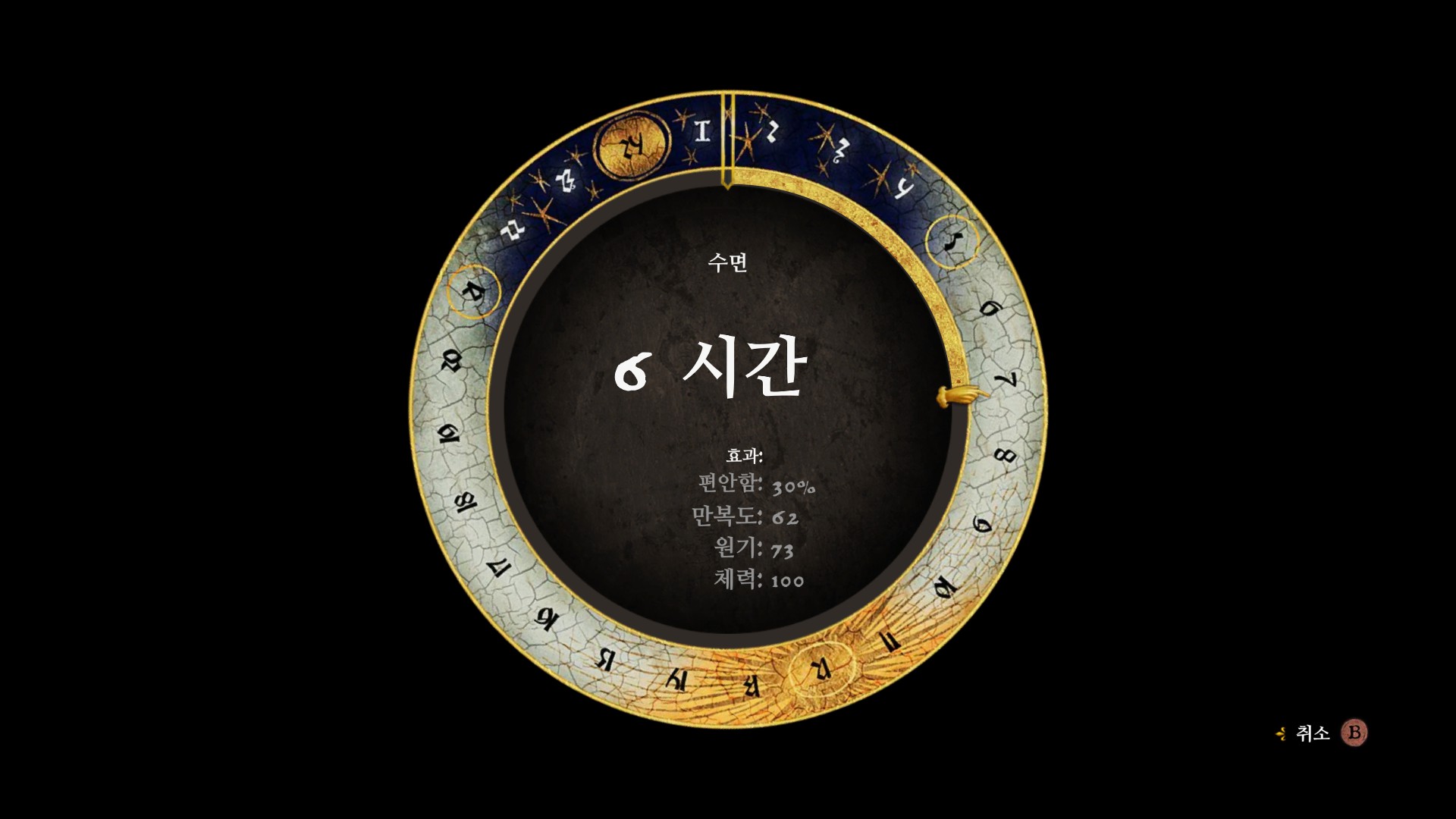 현실적인 게임성 추구해서인지, 높은 자유도의 탓인지 게임진행 시 밥을 먹어야 하고, 씻고, 잠도자야 한다. 그리고 밤과 낮의 시간에 맞추어 생활해야 한다. 시간을 지나 칠 수 있는데 기다리기가 은근히 귀찮다. 개인적으론 관리하기가 귀찮기에 불편한 부분이었다.